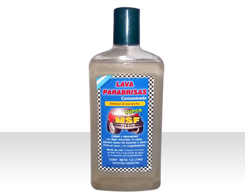 Elimina la escarcha. Limpia y desengrasa sin dejar manchas, ni vetas, elimina restos de insectos y barro. Evita el sarro y el congelamiento. Modo de uso: Coloque una parte de MSF plus y tres partes de agua en el depósito del lavaparabrisas.