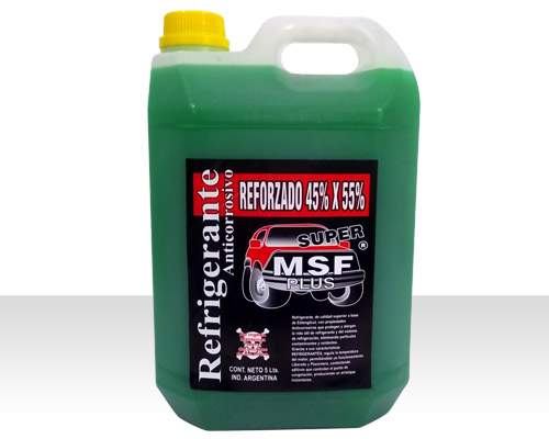 Reforzado 45% x 55% Refrigerante, de calidad superior a base de Etilenglicol, con propiedades Anticorrosivas que protegen y alargan la vida útil de refrigerante y del sistema de refrigeración, eliminando partículas contaminantes y oxidantes. Gracias a sus características REFRIGERANTES, regula la temperatura del motor, permitiéndole un funcionamiento liberado y placentero, conteniendo aditivos que controlan el punto de congelación, produciendo un arranque instantáneo.